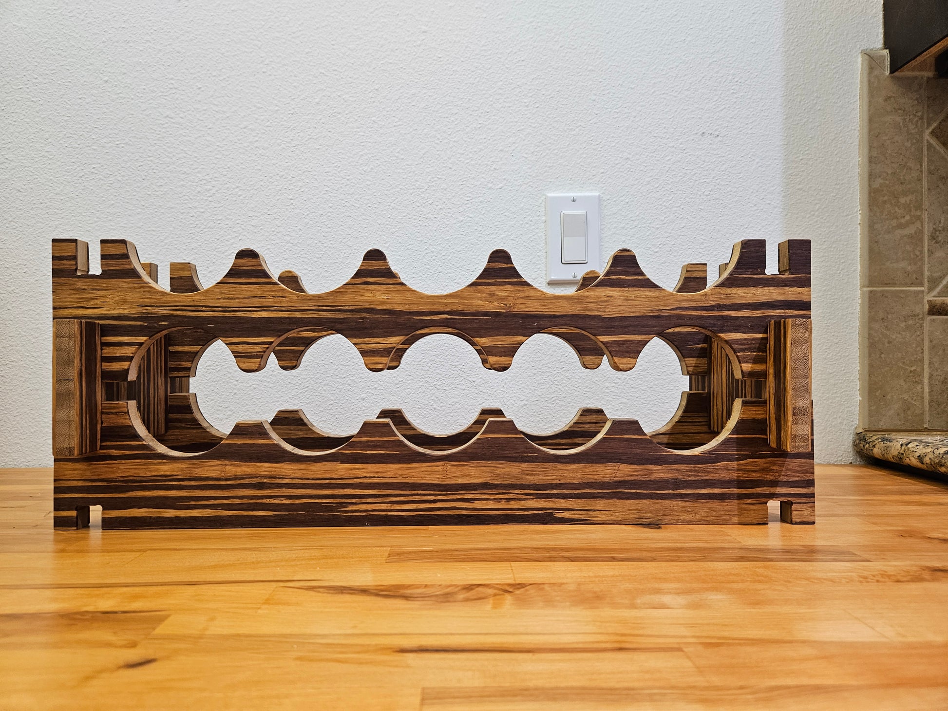 This beautiful wine rack can sit on the counter or store away into your cabinet.